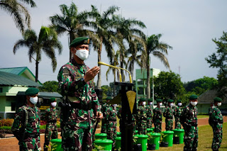 2000 tong Budikdamber diserahkan secara simbolis kepada Komandan Satuan yang selanjutnya akan didistribusikan kepada prajurit untuk dimanfaatkan sebagai media pendukung budidaya ikan lele serta tanaman sayuran dalam rangka mendukung program ketahanan pangan ditengah pandemi virus Corona (Covid-19).